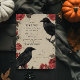 Réveillez vos invités à une nuit de mystère avec ce design d'Halloween Rose du Corbeau gothique. Doté de corbeaux noirs, de roses rouges et de toiles d’araignée hantantes, il est le choix idéal pour une célébration sinistre mais élégante. Sombre, dramatique et inoubliable, ce design ouvre la voie à un rassemblement d'Halloween rempli de frissons et de sensations fortes.