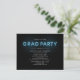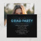 Grad 2022 Blue Neon Graduation Party Invitation avec un design moderne avec photo sur le côté inverse pour remplacer par votre propre.