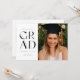 Celebrate your graduation in style with this modern graduation announcement and invitation. It features the word GRAD in stylish sans serif on the front, along with space for a photo. The back of the invitation has space for a second photo as well as room for all of the details of your graduation party.