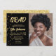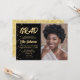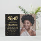 Grad Party Class of 2023 Gold Parties scintillant Graduation Invitation est parfait pour n'importe quel événement de diplômes et faire-part de diplôme. L'élégant design noir et or est moderne, audacieux et luxueux. La carte grad présente un thème doré et noir avec arrière - plan parties scintillant sur le dos, une photo avec des recouvrements dorés, et le "grad" dit en caractères gras calligraphie. Entièrement personnalisable pour les faire-part de fin d'études supérieures, faire-part de fin d'études secondaires, niveau supérieur, lycée, classe de 2023, diplôme 2023 et plus. Combinez avec d'autres objets de la collection Gold And Bold. ©EpicSparkle
