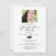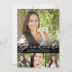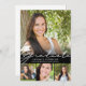 Invitation de remise de diplômes moderne avec 5 photos (4 sur le devant et 1 sur le dos) avec une typographie manuscrite tendance design de titre GRADUATE avec une casquette de remise de diplômes ou un mortier en blanc contre un arrière - plan noir modifiable vous pouvez changer à une couleur d'école, une couleur pour coordonner avec vos photos ou une couleur préférée. Le verso comprend les détails de votre invitation personnalisée. ASSISTANCE : Pour obtenir de l'aide sur la modification ou la personnalisation de la conception, le changement de couleur, le transfert de la conception vers un autre produit ou pour coordonner des éléments, contactez le concepteur AVANT DE COMMANDER via l'onglet MESSAGE Conversation Zazzle ou envoyez un courriel à makeitaboutyoustore@gmail.com.