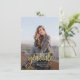 Ajoutez votre photo préférée, votre faire-part de remise de diplômes et votre invitation à la fête à l'envers en cliquant sur le bouton "Personnaliser". Avec une photo verticale pleine image avec le mot "diplômé" en caractères gras.