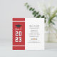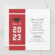 Ajoutez votre année de graduation, le nom et les détails du lieu avec date à cet arrière - plan moderne en rouge et blanc avec l'invitation de la soirée de graduation en typographie noire en utilisant notre bouton "Personnaliser" ci-dessus. Invitations simples de la fête de remise de diplômes avec un défilement et une casquette de graduation avec lettrage moderne.