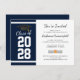 Créez votre propre carte d'invitation moderne avec votre modèle d'invitation bleu marine avec typographie manuscrite, casquette de graduation et défilement. Vous pouvez ajouter la photo du diplômé au dos de la carte ou changer la couleur sur le côté à votre préféré. Parfait pour les diplômés du secondaire, collégial ou universitaire. CONSEIL : Consultez les fournitures de tiers avec le design correspondant dans notre magasin pour coordonner cette invitation avec vos fournitures.