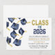 Celebrate your graduate in style with this bold and modern Class of 2026 invitation. Featuring navy blue watercolor graduation caps and elegant gold accents, this design gives a clean, elevated feel perfect for any graduation party or open house. The layout is easy to customize with your graduate’s name, school, date, and event details. Ideal for high school or college grads who want something timeless with a polished look.