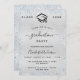 Une invitation moderne, élégante et minimaliste à la remise des diplômes. Arrière - plan métallique argent Faux décoré de la poussière de parties scintillant bleu clair. Personnalisez et ajoutez un nom, une année et des détails. Lettres de couleur noire.