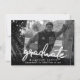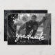 Modèle moderne de graduation avec une superposition photo et script dans une palette minimaliste de base noir et blanc. Le design comprend une plaque de peinture monochromatique avec un script et une image en lettres et avec le nom de la grade, l’école et l’année de graduation. #bound #classof2019
