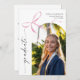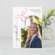 Célébrez votre réussite scolaire grâce à notre Invitation à l'obtention d'un diplôme en bois rose, conçue pour associer élégance et style moderne, et capturer à merveille l'essence de votre journée spéciale. L'arc délicat en aquarelle rose doux orne les deux côtés de l'invitation, ajoutant une touche de sophistication et de charme, créant un cadre gracieux pour vos détails de graduation. Avec un modèle photo en arc sur le devant, vous pouvez ajouter une image chère qui reflète votre voyage, transformant l'invitation en un souvenir mémorable. Le mot "diplômé" est magnifiquement présenté dans une police de caractères verticale moderne sur le devant, tandis que "grad party" grace le dos, offrant une esthétique contemporaine et élégante. Le design élégant de cette invitation le rend adapté à toute célébration de graduation, que ce soit une cérémonie officielle ou une réunion décontractée avec des amis et la famille. Invitations vos proches à se joindre à la célébration de cette étape importante avec notre Invitation de Graduation Bow Rose. C'est plus qu'une simple invitation ; c'est une belle expression de votre succès et le nouveau chapitre passionnant qui attend.