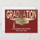 Une graduation moderne, audacieuse et simple sauve la date à envoyer à votre famille et à vos amis. Caractéristiques typographie moderne et faux capuchon de graduation or. Monogramme avec le nom de vos diplômés et la date d'obtention du diplôme. Conception à l'avant et à l'arrière. Ajoutez plus d'informations et de détails sur le dos de la carte. La couleur arrière - plan rouge peut être changée en la couleur de votre choix.