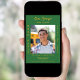 Personnalisez et ajoutez une photo, un nom, le nom de l'école, la classe et les détails de la fête. Un arrière - plan vert de forêt, texte doré.