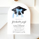 Célébrez votre graduation dans le style et l'élégance avec cette invitation moderne en forme d'arc, avec un arc bleu chic, une casquette de graduation classique, et une typographie élégante. Parfait pour une fête de graduation branchée et sophistiquée, ce modèle modifiable est facile à customiser pour l'impression ou le partage numérique. Une façon élégante et intemporelle pour les clients invitations à votre étape spéciale! 💙 🥂