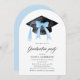 Invitation Graduation Moderne Bleu Bow Graduation Cap Arched