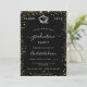 A modernité et élégant graduation party invitation. A black background decorated with faux gold glitter dust. Personalize and add a name, year and Details.