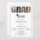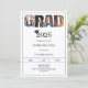 A modern and stylish black and white invitation for a graduation party. Add 4 photos to the GRAD photo frame. Decorated with a black graduation cap. Personalize and add a name, and the details.