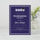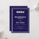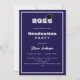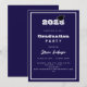 Une invitation moderne et design à la remise des diplômes. Pour lui et elle. Arrière - plan bleu, texte blanc et cadre. Une casquette noire de graduation.