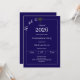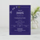 A classic dark blue and white invitation for a graduation party for a guy. Text: He did it! Decorated with a black graduation cap. Personalize and add a name and the details.