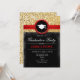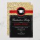 Invitation de la fête de graduation. Design élégant en faux parties scintillant or et noir avec une pointe de rouge. Parfait pour une fête de remise de diplômes de femmes glamour.