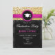 Invitation à la graduation - Gold Black Pink. Design élégant en faux parties scintillant or et noir avec et une pointe de rose. Parfait pour une fête de remise de diplômes.
