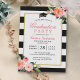 Invitation Graduation Party Moderne Floral Black Stripes