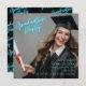Invitation amusante, moderne et optimiste du Graduation Party avec une lettrage de néon turquoise brillant. Mettez à jour la photo d'un diplômé et personnalisez le nom, l'année de classe, la date, l'heure et l'emplacement du diplômé ! Félicitations au diplômé !