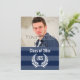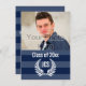 Invitation Graduation photo Monogramme Laurel Bleu Bleu Bande