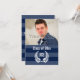 Ajoutez une photo à ce bleu foncé et blanc avec des rayures horizontales larges. Trois initiales monogrammées de trois lettres sont imposantes et belles pour le diplômé du secondaire masculin. Le design classique présente un monogramme personnalisé audacieux, ainsi qu'un style classique pour les hommes et les garçons de tout âge.