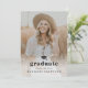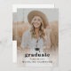 Une élégante invitation à la remise des diplômes avec une grande photo verticale avec capuchon de graduation et un texte modifiable minimal sur le devant. Le dos a une photo horizontale et un endroit à utiliser pour annoncer les détails du diplômé et de la fête.