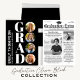 Ce design comprend une calligraphie de grade de diplômé, avec un collage multi-photo trois, un lycée ou collège, une police de script de calligraphie élégante, une typographie traditionnelle classique moderne, un minimaliste simple élégant, un thème de couleur de nom d'école, une simple invitation de remise de diplômes, une carte de faire-part de graduation, avec un texte gris et un arrière - plan blanc simple