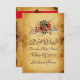 Design élégant et élégant sur parchemin marron ancien et une bande rouge vif.Facile à customiser avec vos initiales et votre propre texte comme carte de faire-part.