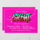 Une invitation graffiti rose vif désordonnée convenant à une enfant de huit 8 ans.