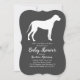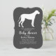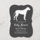 Inclure le grand frère ou la petite soeur à fourrure bébé dans la fête avec cet adorable baby shower de chien Great Dane! Parfait pour un amoureux du chiot avec un bébé en route. Le Great Dane se trouve à côté d'une adorable calèche vintage. L'arrière - plan gris damier est parfait pour une douche neutre ou co-ed pour les hommes !