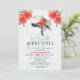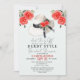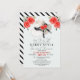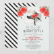 Célébrez la future mariée avec cette invitation de mariage chic et moderne de style derby qui présente une illustration aquarelle d'un grand chapeau avec des roses et un nœud noir sur un fond bleu clair. Le verso présente un motif de rayures noires et blanches. Personnalisez-le pour répondre à vos besoins.