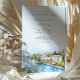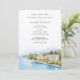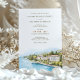Cette invitation de mariage sophistiquée à destination présente une étonnante aquarelle illustrant le Grand Hotel Fasano sur les rives du lac de Garde, en Italie. Les oeuvres d'art rendent la beauté sereine du lac, la verdure luxuriante et l'élégante architecture européenne, le tout dans des tons doux et naturels. La typographie combine des polices de caractères classiques et des polices de caractères modernes, donnant à l'invitation une esthétique raffinée et intemporelle. Parfait pour les couples qui souhaitent un mariage romantique en Italie, cette invitation donne le ton d'une fête inoubliable.