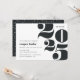 L'invitation de la fête de remise de diplômes moderne comporte "2023" en lettres surdimensionnées, avec les détails de votre fête aligné à gauche. Les invitations se retournent vers des points de confettis blancs sur des points de noir foncé.
