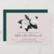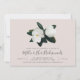 L'invitation pour le brunch des demoiselles d'honneur à fleurs modernes comprend un bloc chic et du lettrage italique mélangés à un élégant script manuscrit, surmonté d'une paire de gracieuses fleurs de magnolia blanches et de luxuriants feuilles vert foncé sur un arrière - plan pastel cameo rose pâle.