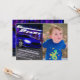 Démarrez vos moteurs et foncez vers la ligne d'arrivée pour célébrer l'anniversaire de votre fils. Cette invitation unique a été dessinée numériquement pour illustrer une voiture de sport très rapide lors d'un concours de course de rue nocturne où personne ne peut suivre