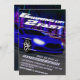 Mettez vos moteurs en marche et courez jusqu'à la ligne d'arrivée pour célébrer l'anniversaire de votre fils. Cette invitation unique a été dessinée numériquement pour illustrer une voiture de sport très rapide lors d'un concours de course de rue nocturne où personne ne peut rattraper