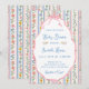 A soft vintage-inspired baby shower invitation with delicate watercolor wildflowers in pastel pink and blue tones. The striped floral background creates a light, elegant feel, while the scalloped frame and pink bow add a sweet and timeless touch. Matching items available.