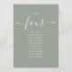 Ces élégantes cartes de graphique de table numéro 4 recto-verso de couleur vert sauge avec écriture manuscrite distinctive sont parfaites pour toutes les célébrations. Conçues par Thisisnotme©