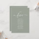 Invitation Graphique de table numéro 5 vert sauge écriture