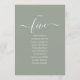 Ces élégantes cartes de graphique de table numéro 5 double face vert sauge avec écriture signature sont parfaites pour toutes les célébrations. Conçues par Thisisnotme©