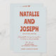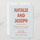 Ce faire-part de mariage est parfait pour votre mariage si vous recherchez une invitation élégante unique et facile à éditer.Une élégante invitation unique minimaliste crème mariage modèle . Ce qui présente un arrière - plan bleu ciel clair. Et les prénoms de mariée et mariée en caractères super en gras rouge rouille. et les infos modifiables avec gros caractères gras se marient sur le dos et le code QR personnalisable pour les détails rsvp et mariage en ligne. Abordable et il est aussi numérique électronique e-invitation si vous voulez l'envoyer par texte ou e-mail. Toutes les informations sont personnalisables en cliquant sur le bouton personnaliser. Alors attrapez-le et faites-le vous pour que vous fassiez de vous des invitations engagés et enthousiasmés.