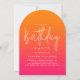Célébrez votre anniversaire dans un style audacieux et magnifique ! Cette invitation d'anniversaire personnalisée fait exactement cela avec ses couleurs vives et audacieuses orange et rose chaud foncé dégradés mélangés avec du texte moderne blanc et un accent manuscrit épelant le mot "anniversaire" dans un style fabuleux. Les couleurs ressemblent à un lever de soleil et à l'aube d'une nouvelle ère ! Ces invitations peuvent être commandées en format numérique à la fois imprimé et instantané.