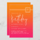 Audacieuse, belle et si élégante, cette simple invitation à la fête de 21ème anniversaire minime a une ambiance rétro. Des couleurs claires et foncées dans les tons orange et rose chaud se mélangent dans une explosion de couleurs, parfait pour une fête. Les couleurs ressemblent à un lever de soleil et à l'aube d'une nouvelle ère ! La disposition minimaliste moderne s'associe à la typographie blanche, avec un audacieux sans-serif pour les détails de l'événement et un script manuscrit gracieux pour le mot "Anniversaire". Un badge carré élégant souligne l'âge du jalon, ajoutant une touche sophistiquée pour toute célébration d'anniversaire adulte. Ces invitations peuvent être commandées en format numérique à la fois imprimé et instantané.