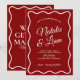 Ce faire-part de mariage est parfait pour votre mariage avec un design unique. Une élégante invitation simple et minimaliste à la modèle mariage de crème blanche. Ce qui présente un arrière - plan rouge foncé clair. Et les prénoms de la mariée et du marié fantaisiste blanc et fantaisiste et les infos modifiables. Abordable et il est aussi numérique électronique e-invitation si vous voulez l'envoyer par texte ou e-mail. Toutes les informations sont personnalisables en cliquant sur le bouton personnaliser. Alors attrapez-le et faites-le vous pour que vous fassiez de vous des invitations engagés et enthousiasmés.