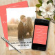 Mettez en valeur votre histoire d'amour avec cette invitation de mariage moderne avec une photo pleine page et une écriture rose douce sur un arrière - plan corallien audacieux. Facile à customiser. Le texte et les couleurs sont modifiables. Si vous avez besoin d'aide pour la conception ou les produits correspondants, veuillez envoyer un courriel à Brandi@photobooksbybrandi.com