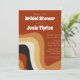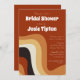 Cette super invitation à la douche nuptiale rétro présente des lignes ondulées dans le bronze, le brun et l'orange, qui rappellent le mode de vie les années 70 et hippie. Un invitation vintage audacieux avec un script blanc funky à côté des lignes courbes abstraites. Amusez-vous avec cette carte de tonalité amusante.