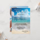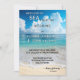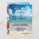 Une faire-part de mariage côtière fantaisiste et amusante, avec une plage aux couleurs bleues et turquoise. Au verso est l'option d'ajouter votre photo ainsi que le code QR avec l'adresse du site. Une joyeuse invitation pour une plage ou un mariage de destination.