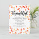 Invitation à la fête de Thanksgiving avec le mot "Thankful" en lettres et calligraphie style script police. Cette invitation est décorée avec de l'aquarelle chute feuilles feuillage. Une invitation à la fête de Thanksgiving simple et élégante avec de belles couleurs automnales.