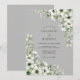 Ethereal white blossoms and delicate green foliage cascade across a soft gray backdrop, creating a romantic and serene atmosphere. This design evokes a sense of natural elegance and timeless beauty, perfect for a sophisticated affair. The subtle color palette lends a refined and understated charm.